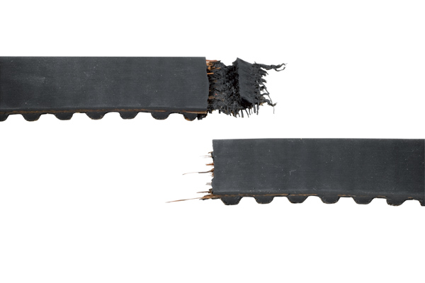 - De la matière s'arrache de la courroie et s'accumule dans les nervures